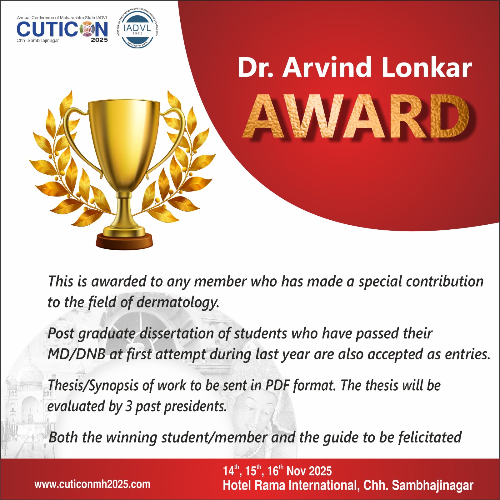 It is with immense joy and heartfelt warmth that we welcome you to CUTICON Maharashtra 2025, the Annual Conference of the Maharashtra State Branch of IADVL, scheduled to be held from 14th to 16th November 2025 at the iconic ITC Rama International Hotel, Chhatrapati Sambhaji Nagar.